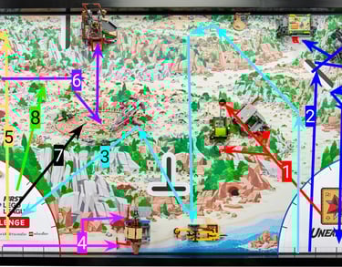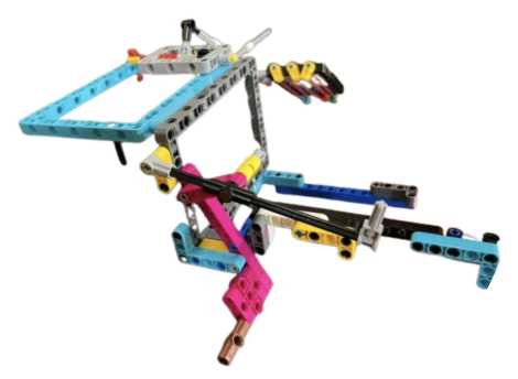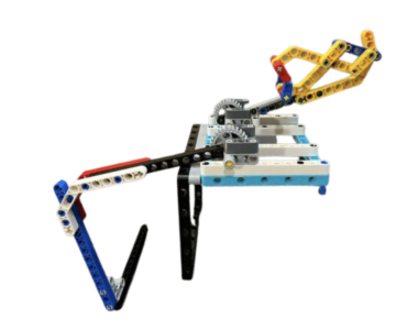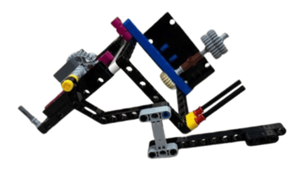 This attachment completes the Careful Recovery + Mineshaft Explorer missions. On the left side of the attachment, we have a beam that lifts the mineshaft lever and sends the minecart to the other table. Using a larger gear gives us higher torque, so the beam can lift the lever flawlessly every run. Next, we have the claw that latches onto the precious artifact while the beam keeps the lever up, leaving space for the claw to latch onto it and pull it up. One of our key strategies for this mission was to go from the front and perform it, because if we were to capture the precious artifact from the side, there was a higher risk of the structure falling, costing us 10 easy points.