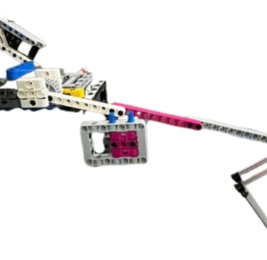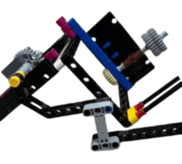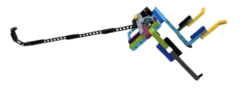 This is the attachment for the mission Map Reveal + Surface Brushing. It has five main components. 3 components help solve the Map Reveal mission, which are all passive. The long stick at the bottom helps reveal the topsoil, accounting for one-third of the mission. The second component, a beam with an L on the tip, pushes the soil back, completing another third of the mission. The last part of the Map Reveal attachment is the L-shaped handle, which helps collect the topsoil, which can later be put in the forum. Next, there are two elements with the Surface Brushing mission, the axle which helps push the soil deposits to the ground by moving the brush, and the motorized rubberband attachment which grabs the brush.